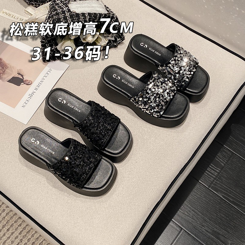 小码女鞋313233松糕一字型外穿拖鞋夏2025新款厚底小个子凉拖鞋34