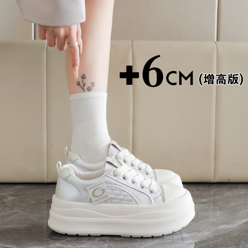 春季厚底女鞋真皮松糕小白鞋2026新款增高34小码矮个子板鞋配裙子
