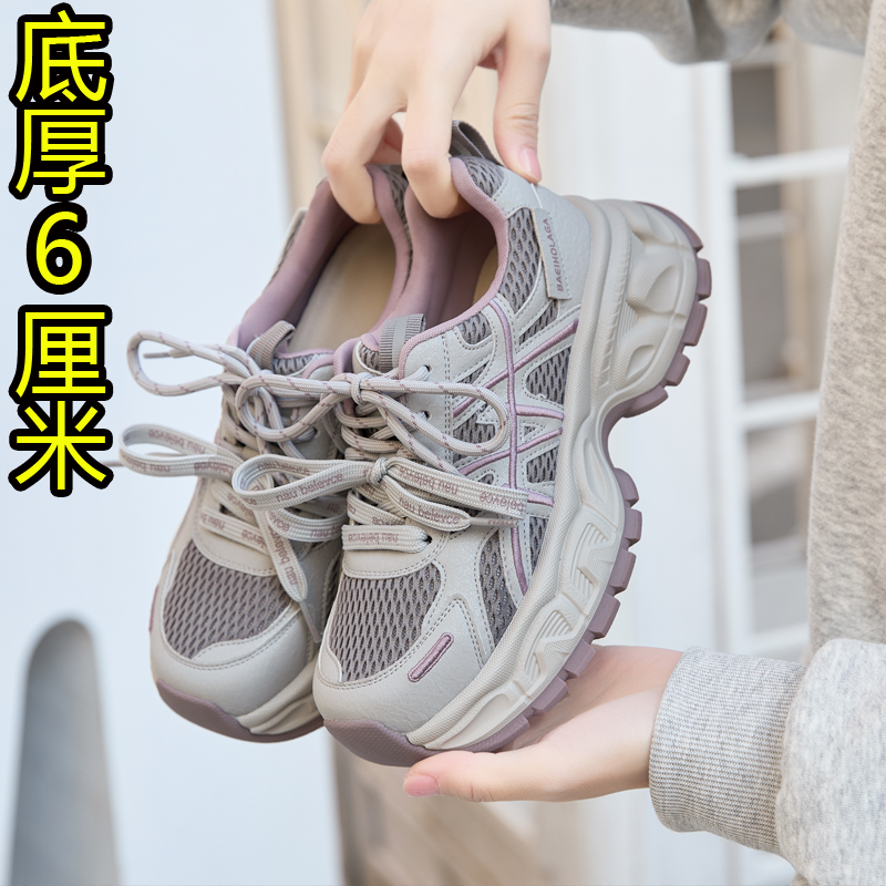 女鞋松糕厚底老爹鞋女款2026春季新款显脚小增高休闲运动鞋子34码