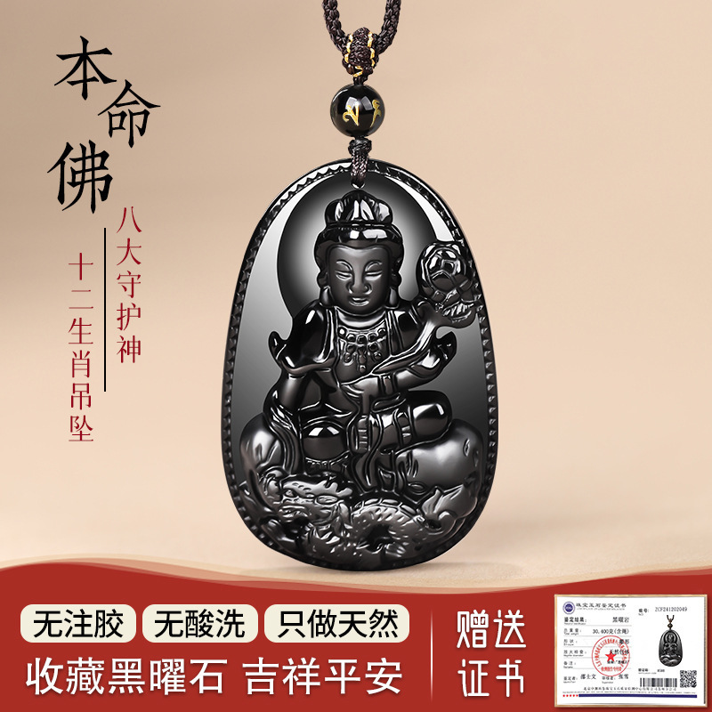- 黑曜石本命佛吊坠 天然
