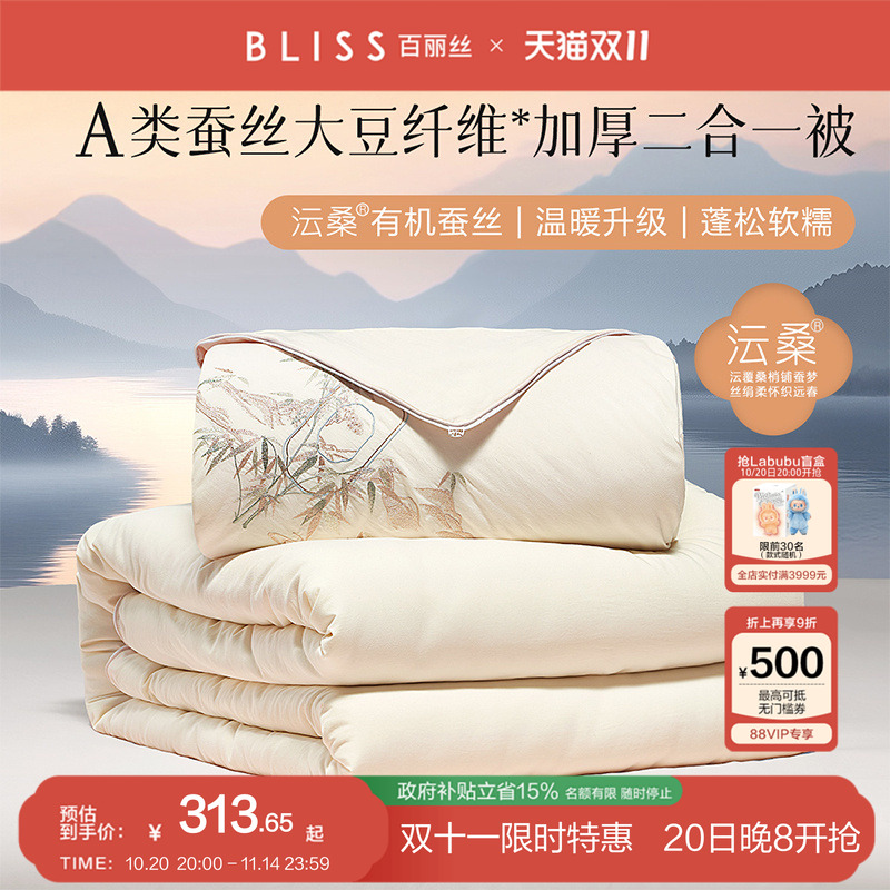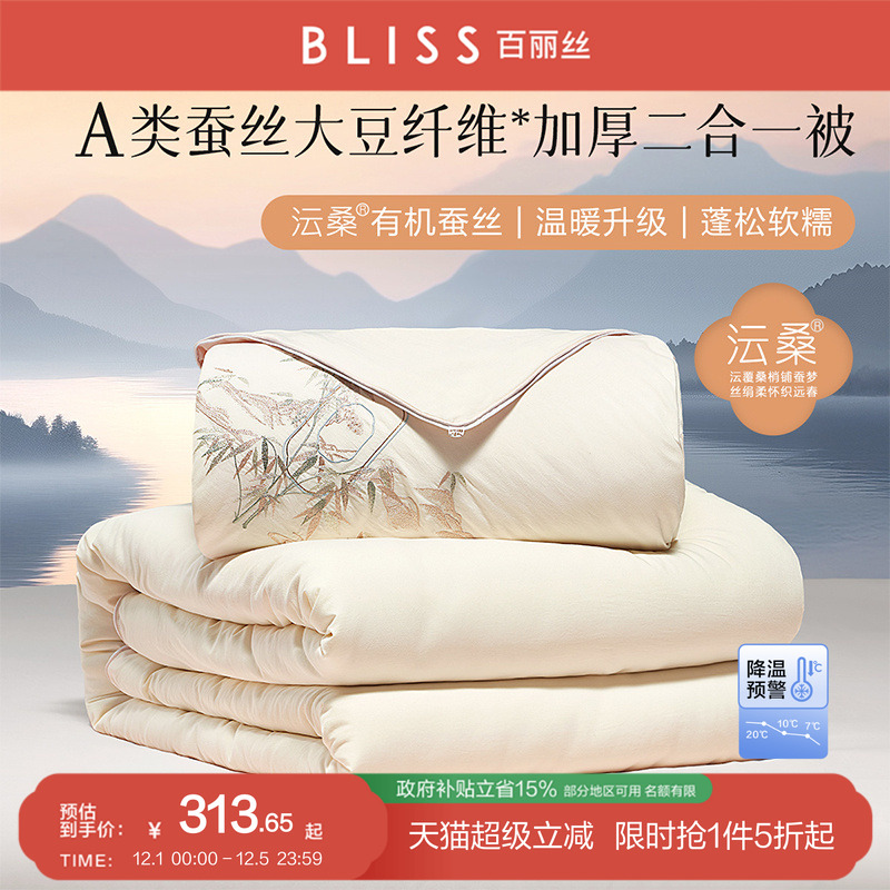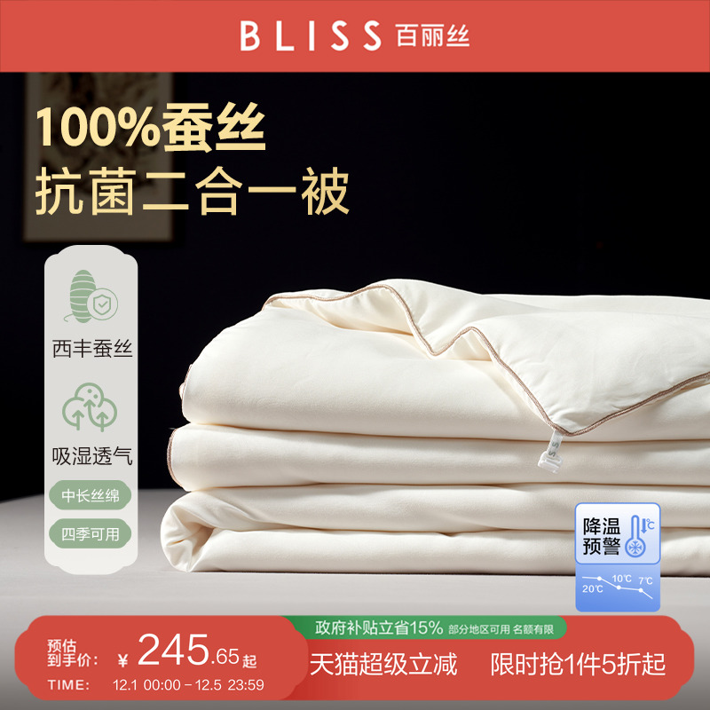 百丽丝家纺100%蚕丝被大豆纤维被二合一被四季被冬被蚕丝子母被