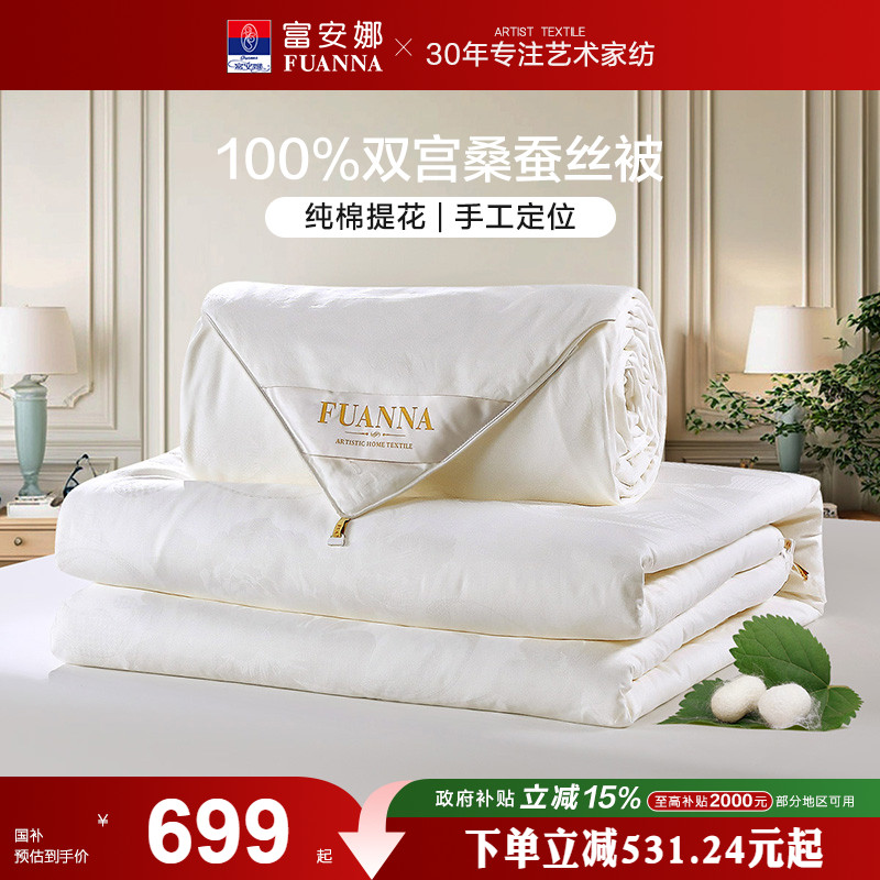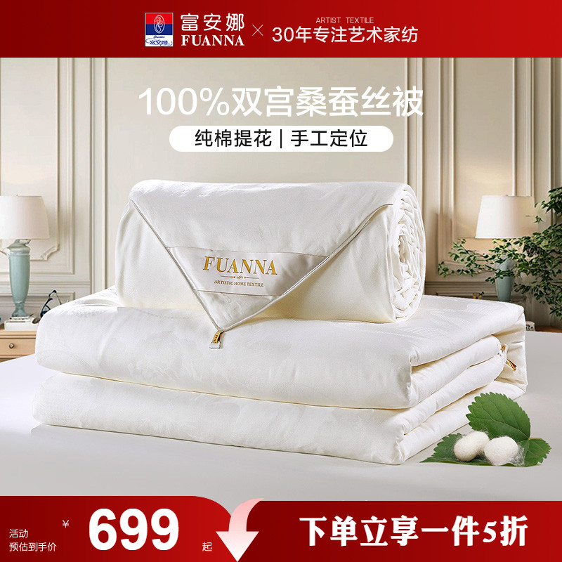 富安娜蚕丝被纯棉双宫桑蚕丝子母被秋冬被芯四季被学生二合一婚庆