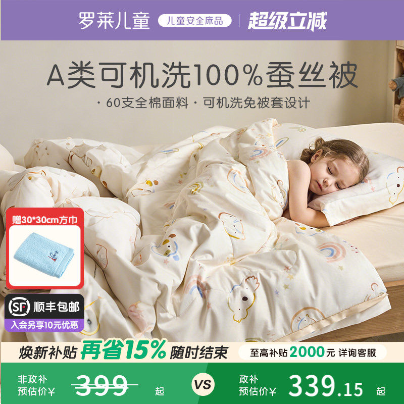 罗莱儿童A类100%蚕丝被四季被免被套子母被二合一被空调被夏被芯