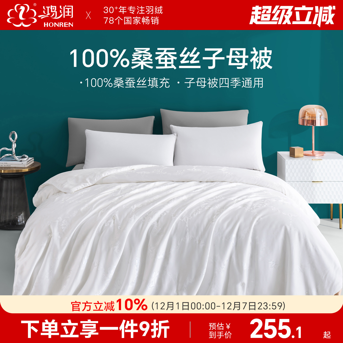 鸿润家纺蚕丝被100%桑蚕丝子母被二合一四季通用空调被夏春秋冬被