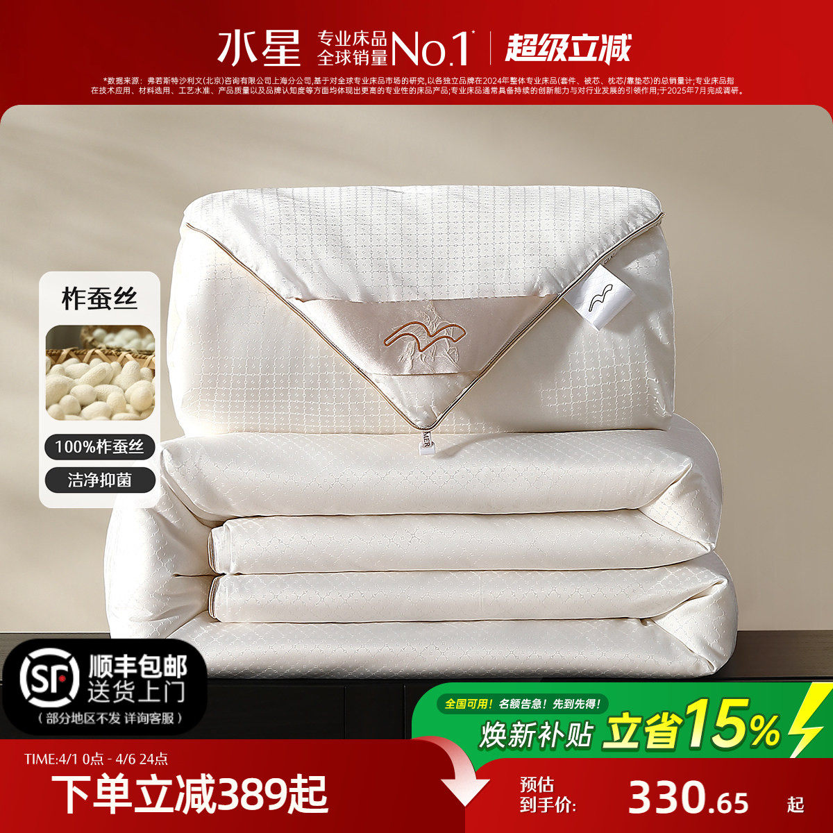 水星家纺蚕丝被100%桑蚕丝黄金丝二合一子母被芯冬被轻奢被子床品