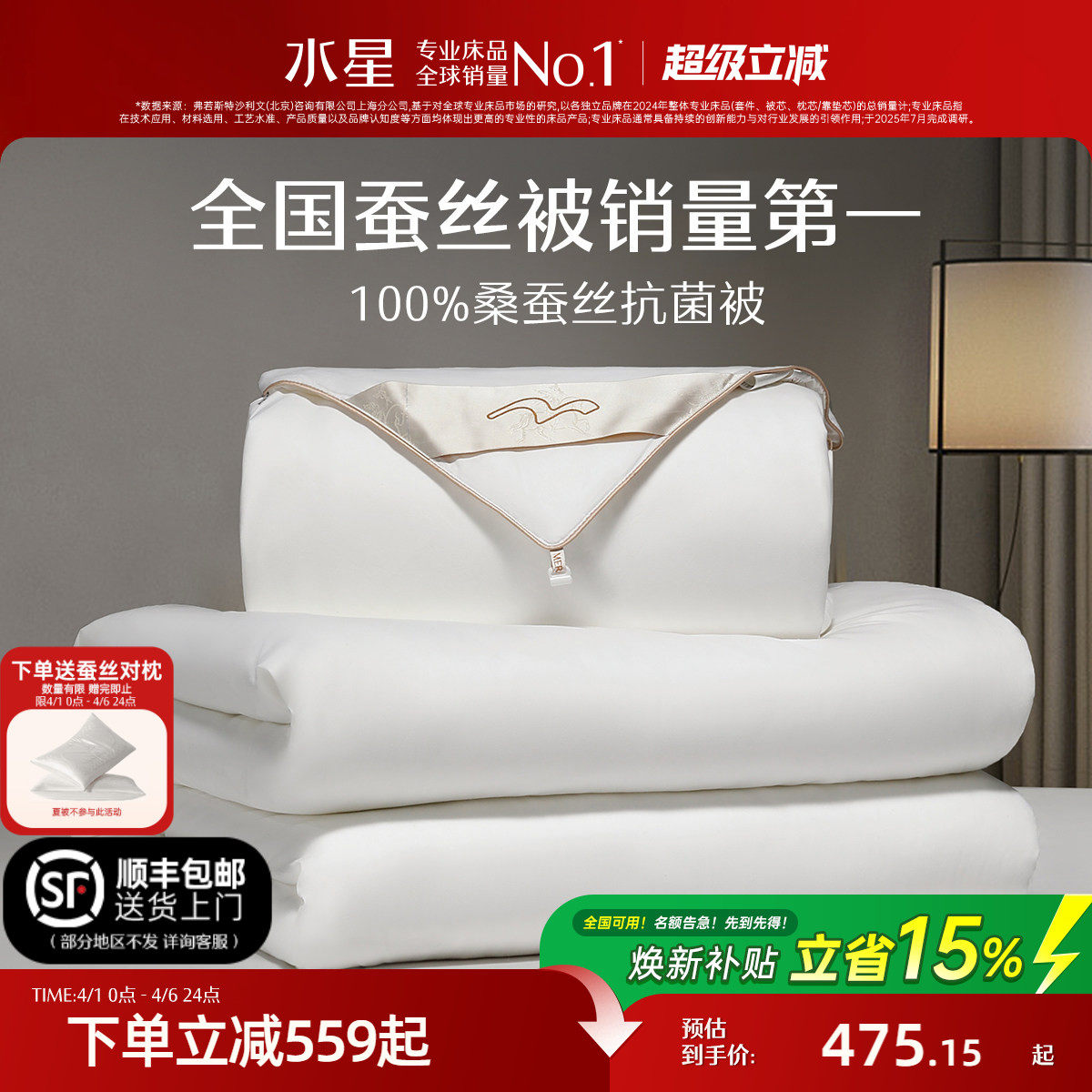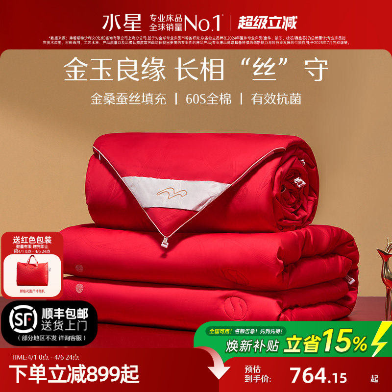 水星家纺蚕丝被100%桑蚕丝喜被婚庆结婚子母被二合一冬被芯床品