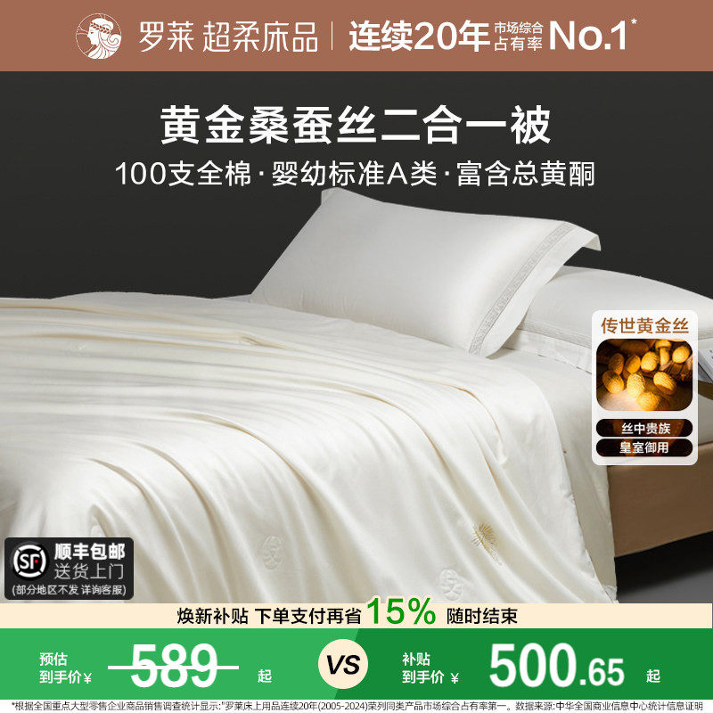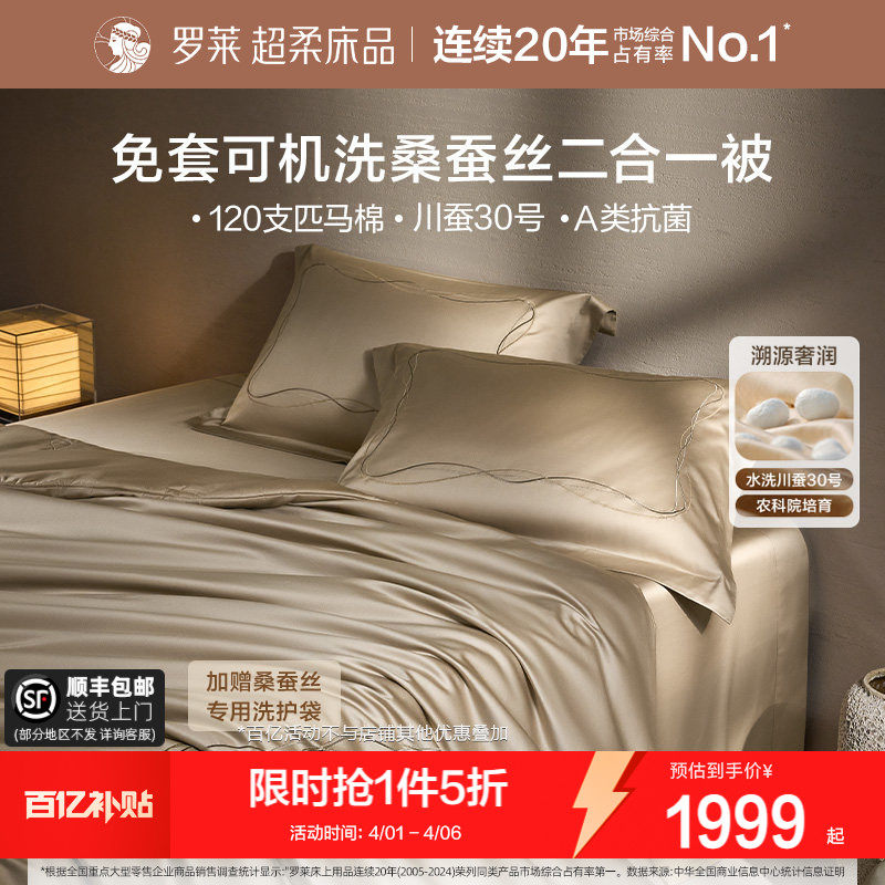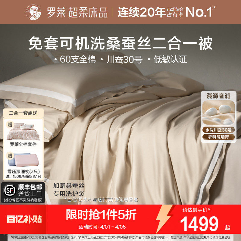 罗莱家纺免套可机洗100%桑蚕丝被子120s匹马棉子母二合一被芯陪嫁