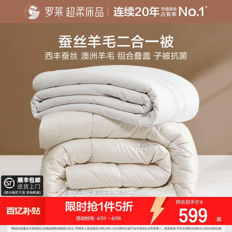 罗莱家纺蚕丝被子澳洲进口羊毛二合一子母被抗菌防螨被芯四季可用