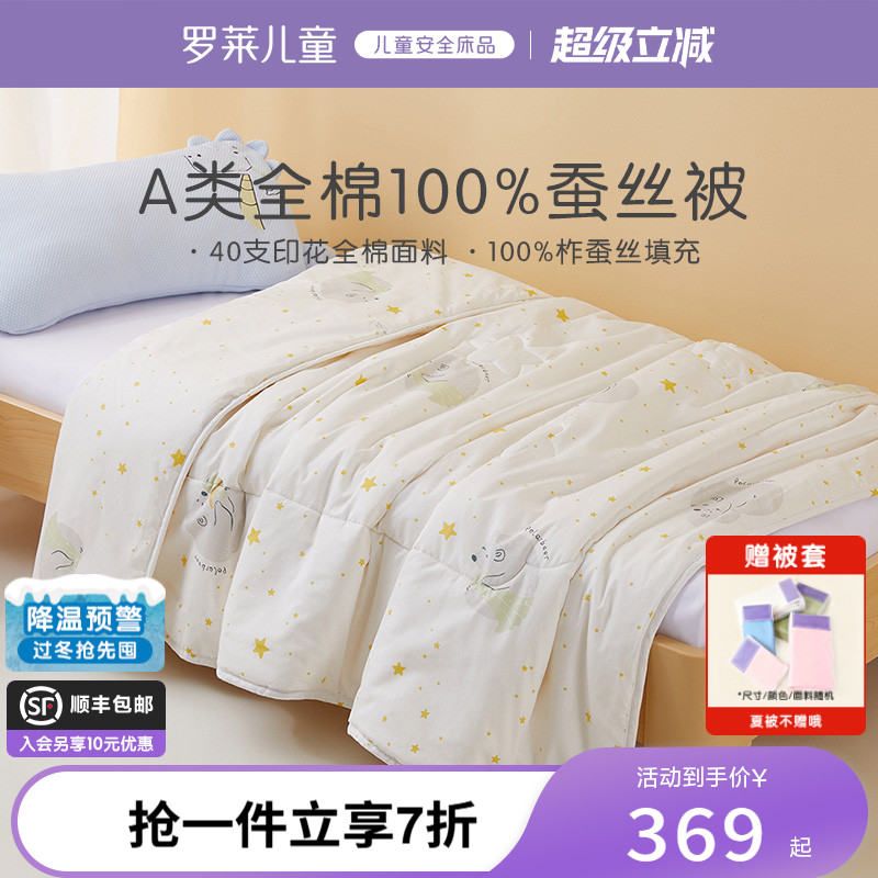 罗莱儿童婴儿被子A类100蚕丝子母被二合一被宝宝被芯纯棉秋冬被子