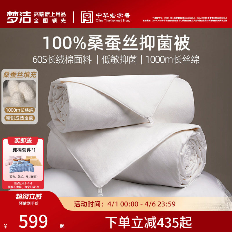 梦洁家纺100桑蚕丝被子夏被春秋被芯二合一子母被四季通用结婚
