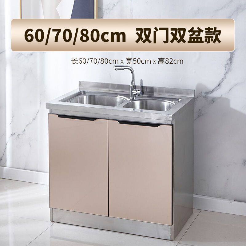 简易不锈钢橱柜厨房水槽柜整体厨柜租房组装碗柜家用经济型灶台柜