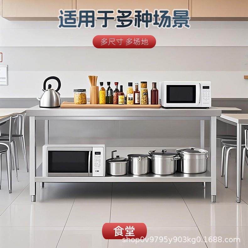 EPR不锈钢厨房作台商.用台操作长方形灶台0工6厚饭店切菜台桌厨柜