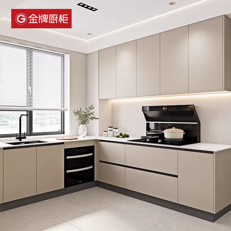 金牌厨柜厨房整体橱柜定制石英石台面家用灶台一体柜厨柜套餐定做