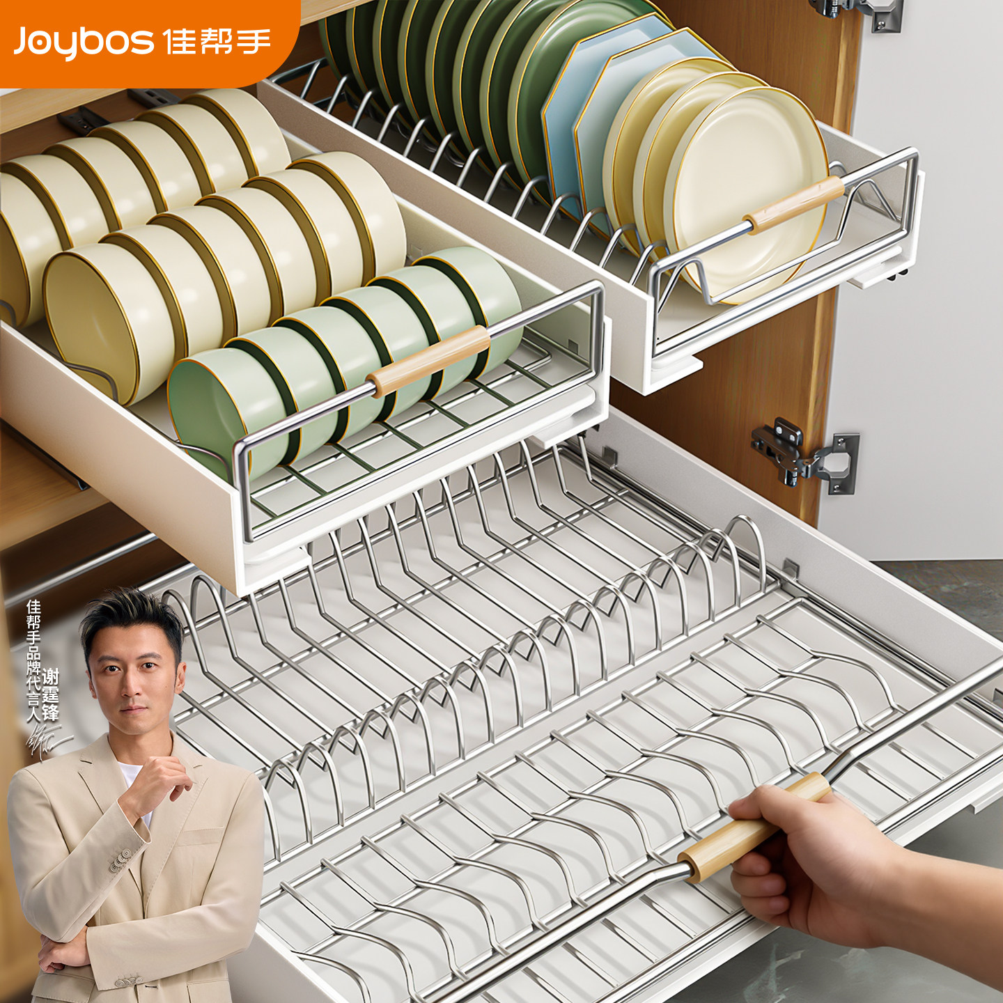 佳帮手厨房抽拉碗碟收纳架橱柜碗架拉篮抽屉式碗盘盘子沥水置物架