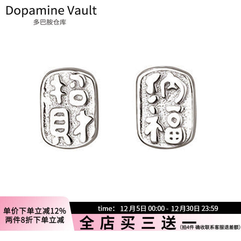 Dopamine Vault」招财纳福.通体999纯银耳钉个性文字日常百搭耳环