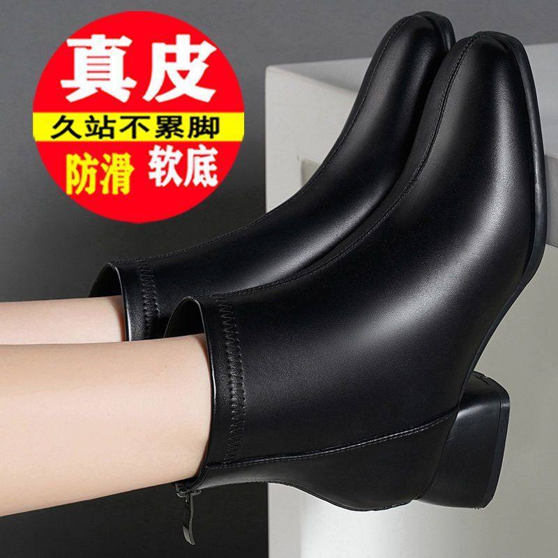 - 冬季真皮粗跟女靴