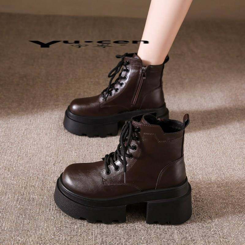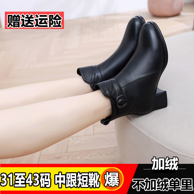 - 真皮厚底坡跟短靴女