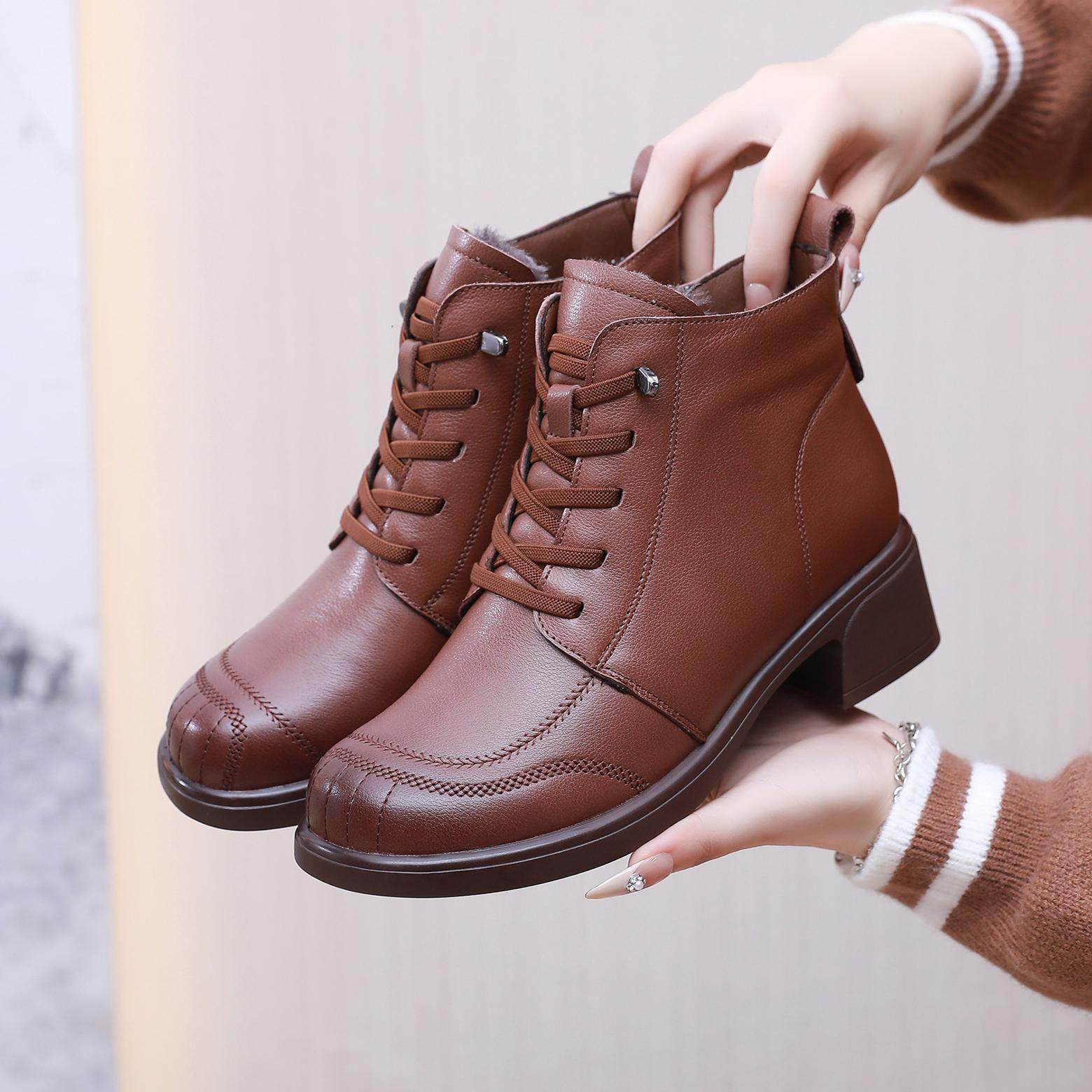 - 冬季真皮女鞋粗跟