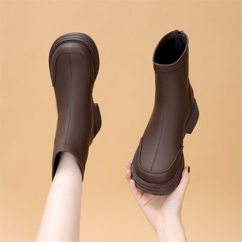 - 切尔西靴 女 粗跟