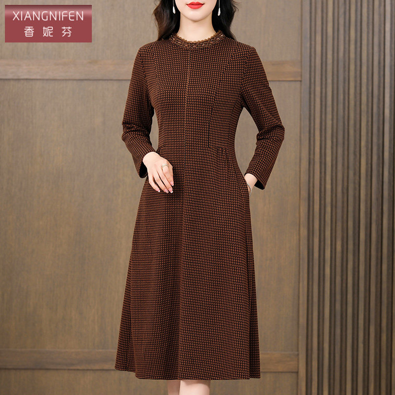 香妮芬气质女神范高级感妈妈款连衣裙2025新款秋季高端精致长袖裙