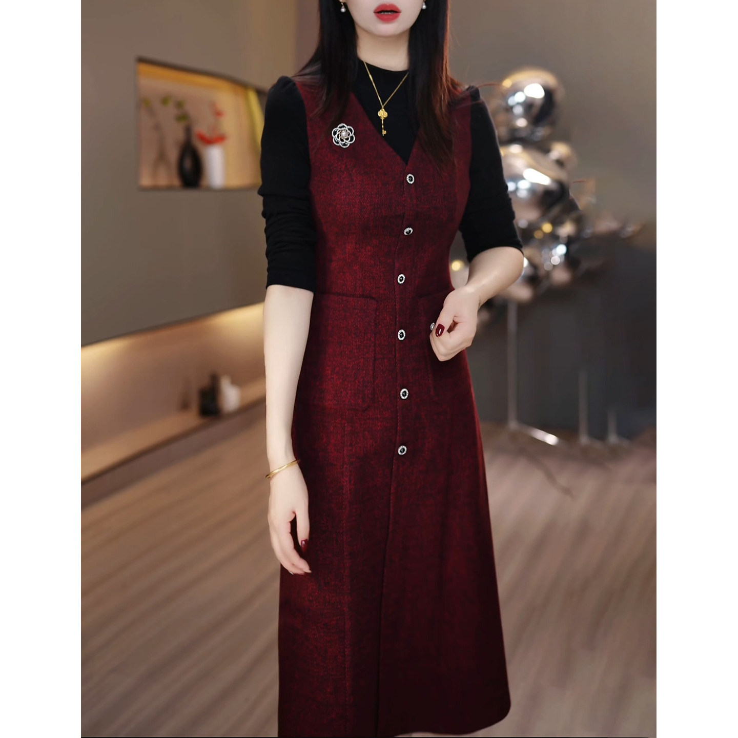 - 冬季连衣裙长裙加厚