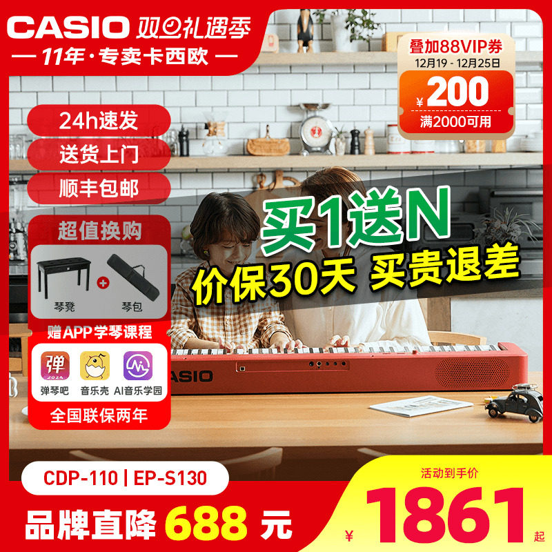 卡西欧电钢琴CDPS110/EPS130重锤88键初学者入门儿童成人专业考级