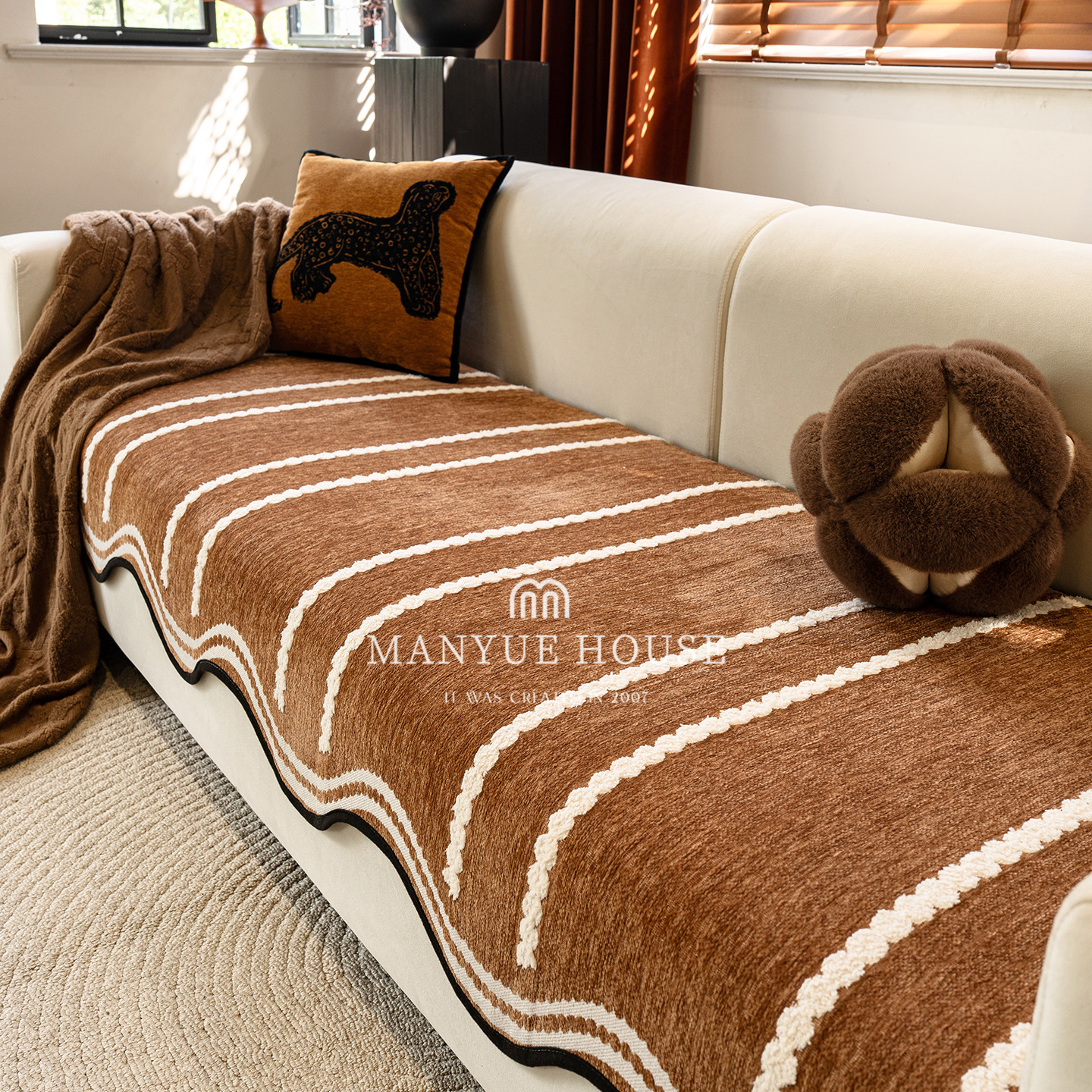 蔓越家 轻奢复古异形雪尼尔沙发垫套罩防滑客厅沙发盖布四季通用
