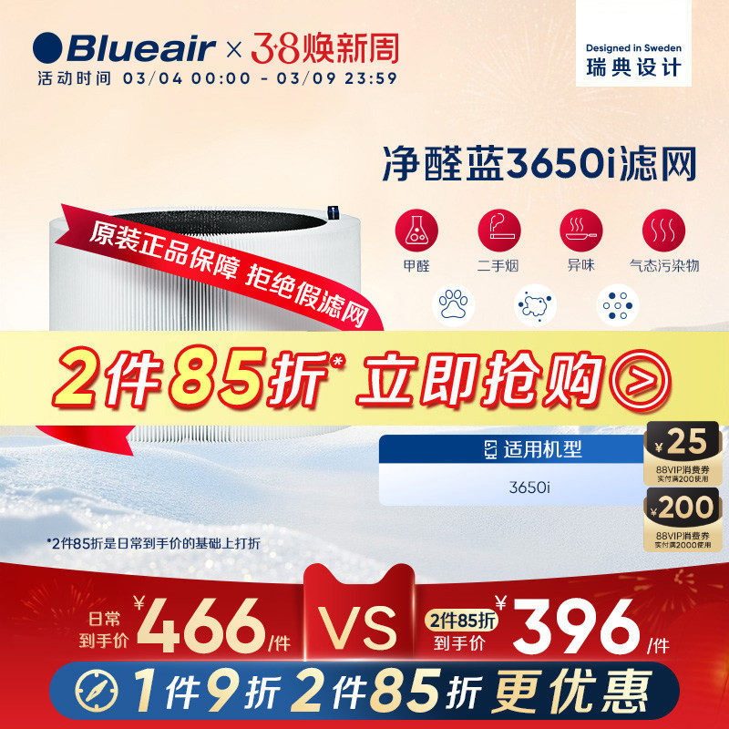Blueair/布鲁雅尔滤网空气净化器滤芯除尘除甲醛适配净醛蓝3650i