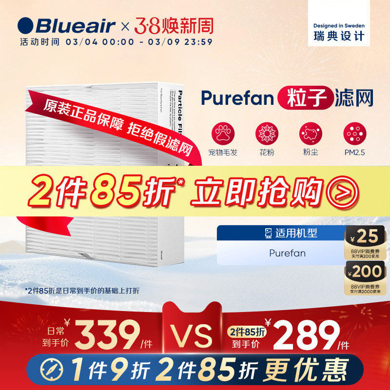 Blueair/布鲁雅尔空气净化器滤芯除尘除烟适用Purefan粒子型滤网