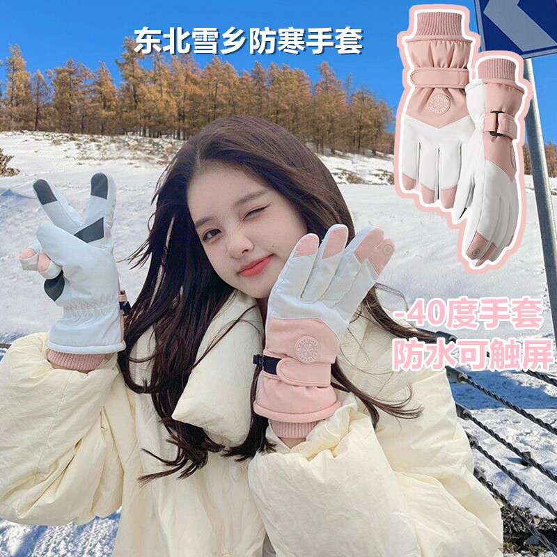 东北哈尔滨雪乡旅游防寒防水保暖雪地手套女士加绒加厚防风可触屏