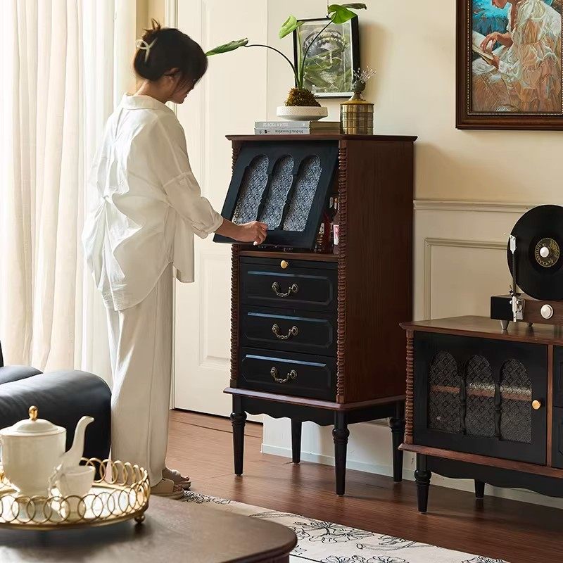 法式复古实木边柜小户型家用轻奢抽屉三斗柜客厅玻璃展示柜餐边柜