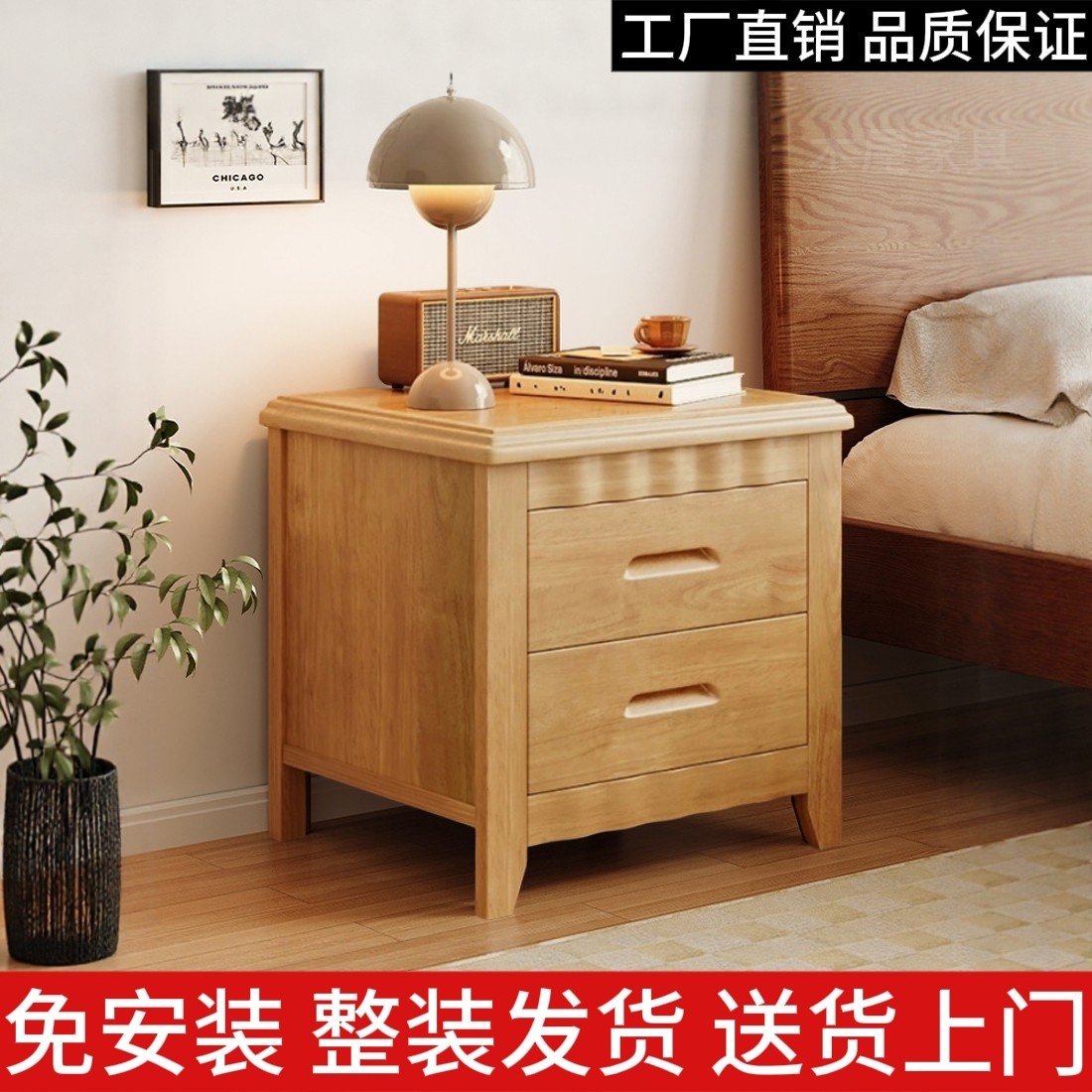 床头柜实木家用卧室床边柜子小型床头置物架免安装带锁储物柜斗柜