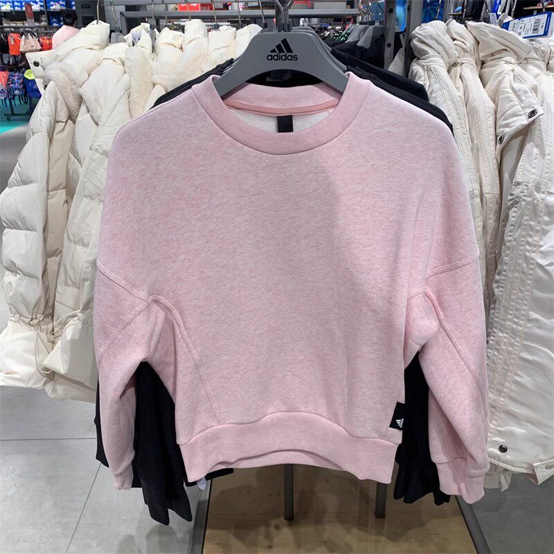 阿迪达斯女子针织棉涤内加绒保暖宽松蝙蝠袖圆领套头卫衣 HE4147