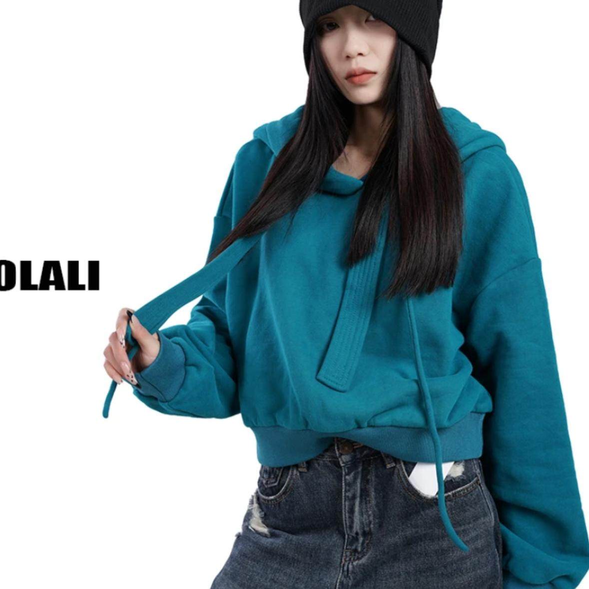 2025年新款春秋卫衣女外穿连帽短款蝙蝠袖套头长袖绳通小个子韩版