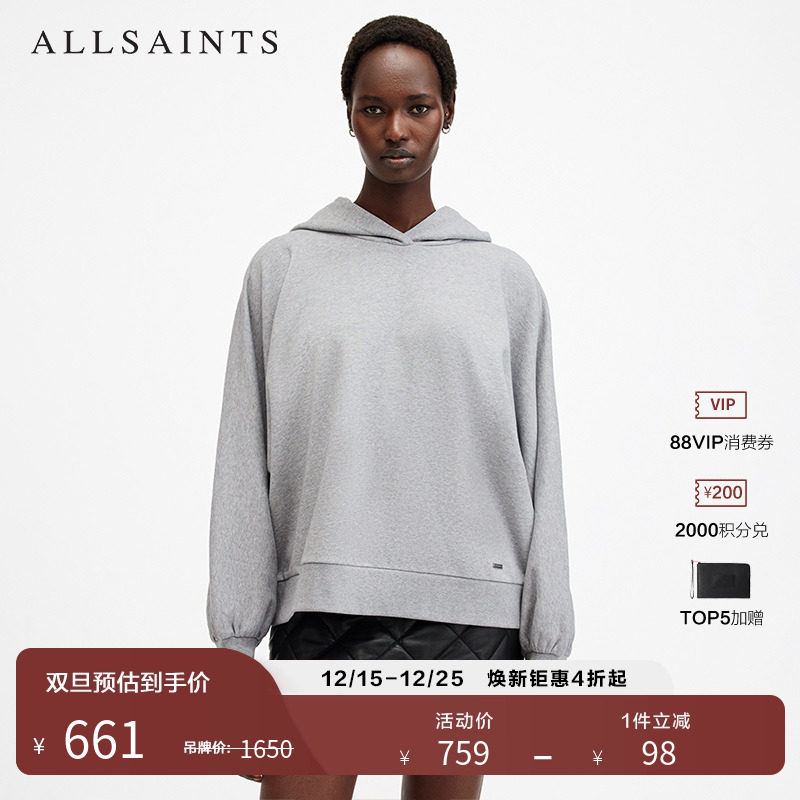 ALLSAINTS女士蝙蝠袖连帽卫衣宽松套头衫2025年秋季W078JB