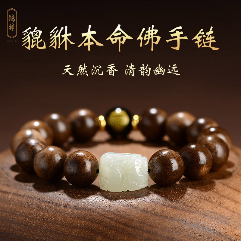 沉香手串男女和田玉本命年手链转运珠木质文玩佛珠生肖龙鸡本命佛