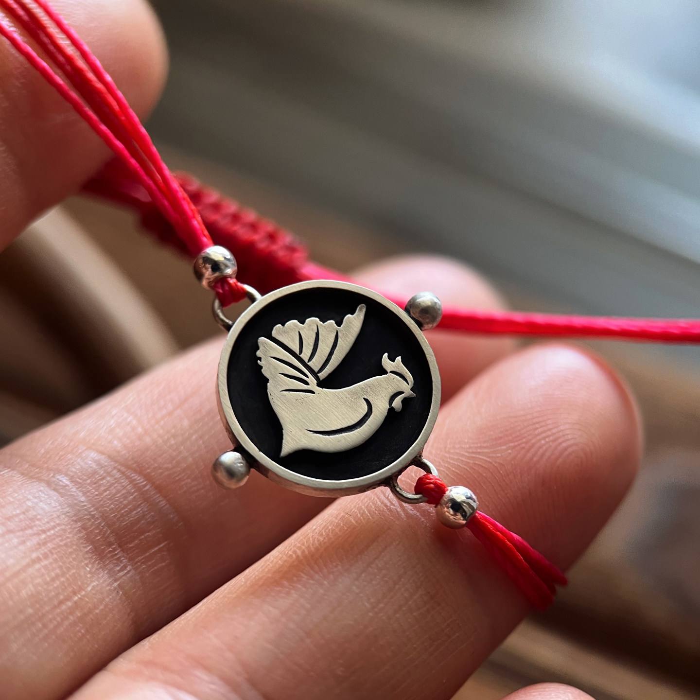生肖鸡足银红绳手链HUIHUI玩儿金工原创本命年女小众首饰新年礼物