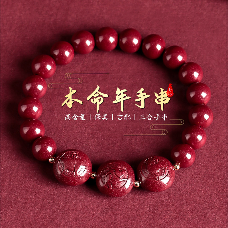 2025年新款朱砂三合手链女龙年本命年手串男生肖鼠猴鸡吉祥物