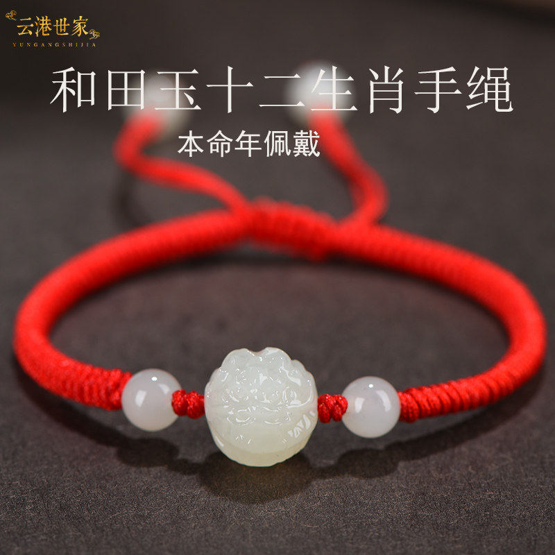 和田玉十二生肖手链男女手串属兔狗猴鸡蛇红绳情侣饰品本命年礼物