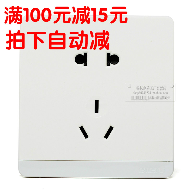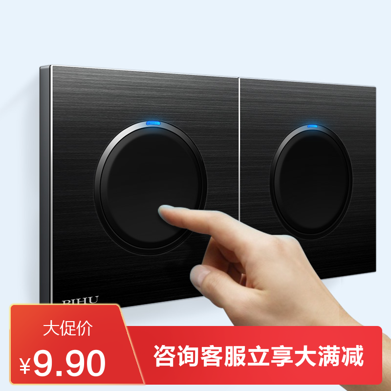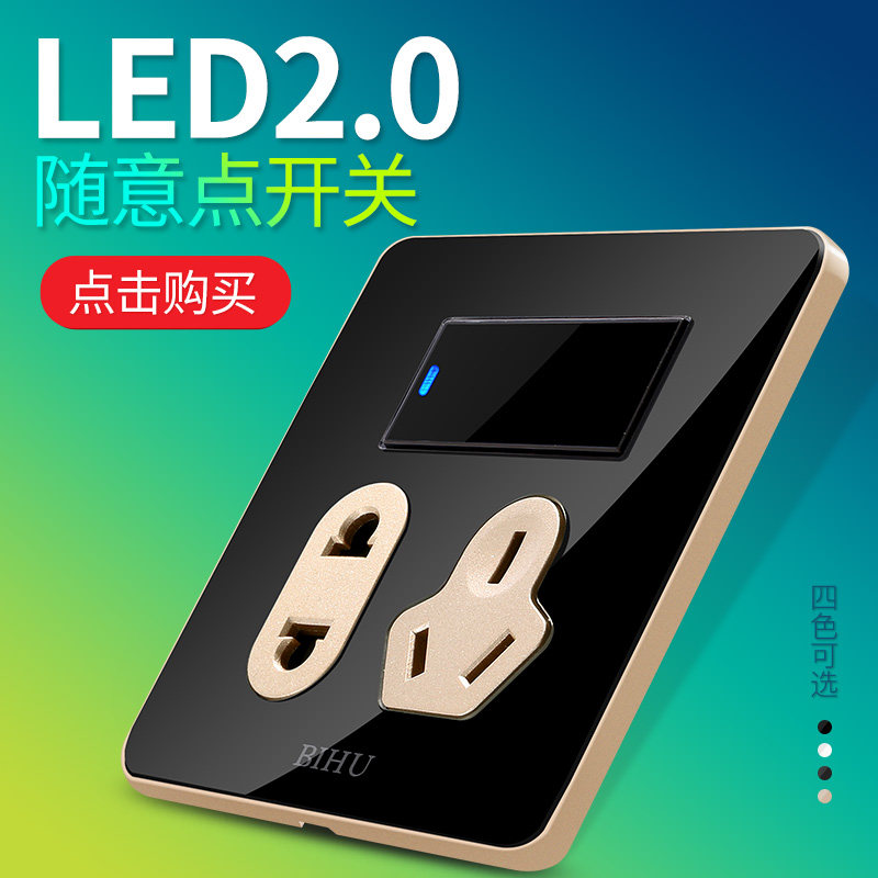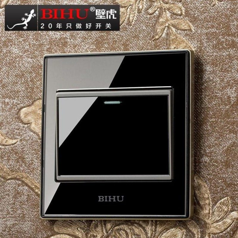 BIHU壁虎插座开关 一开二开五孔电脑开关插座 墙壁镜面LED开关