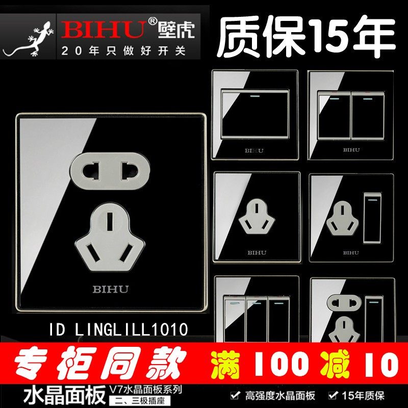 BIHU壁虎开关插座套餐 水晶插座面板 有机玻璃黑色镜面五孔一开V7