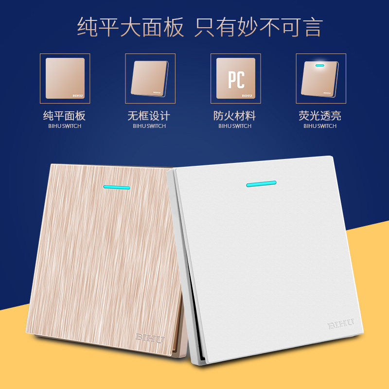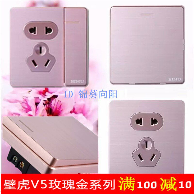 BIHU壁虎开关插座餐 铝镁合金拉丝面板 金色香槟色五孔 一开 V9