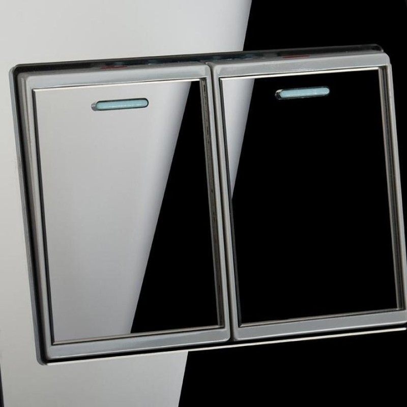 壁虎86型LED随意点开关镜面亚克力家用不锈钢墙壁五孔插座套餐