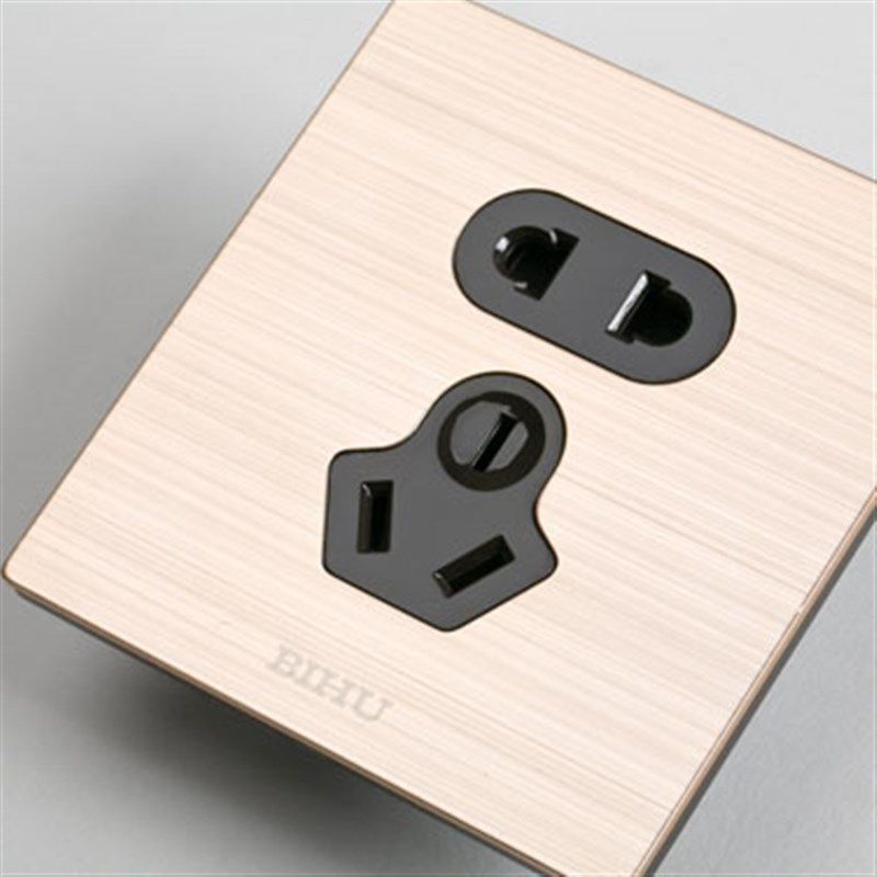 壁虎开关插座拉丝香槟金色金属面板V9家用墙壁暗装86型点开关