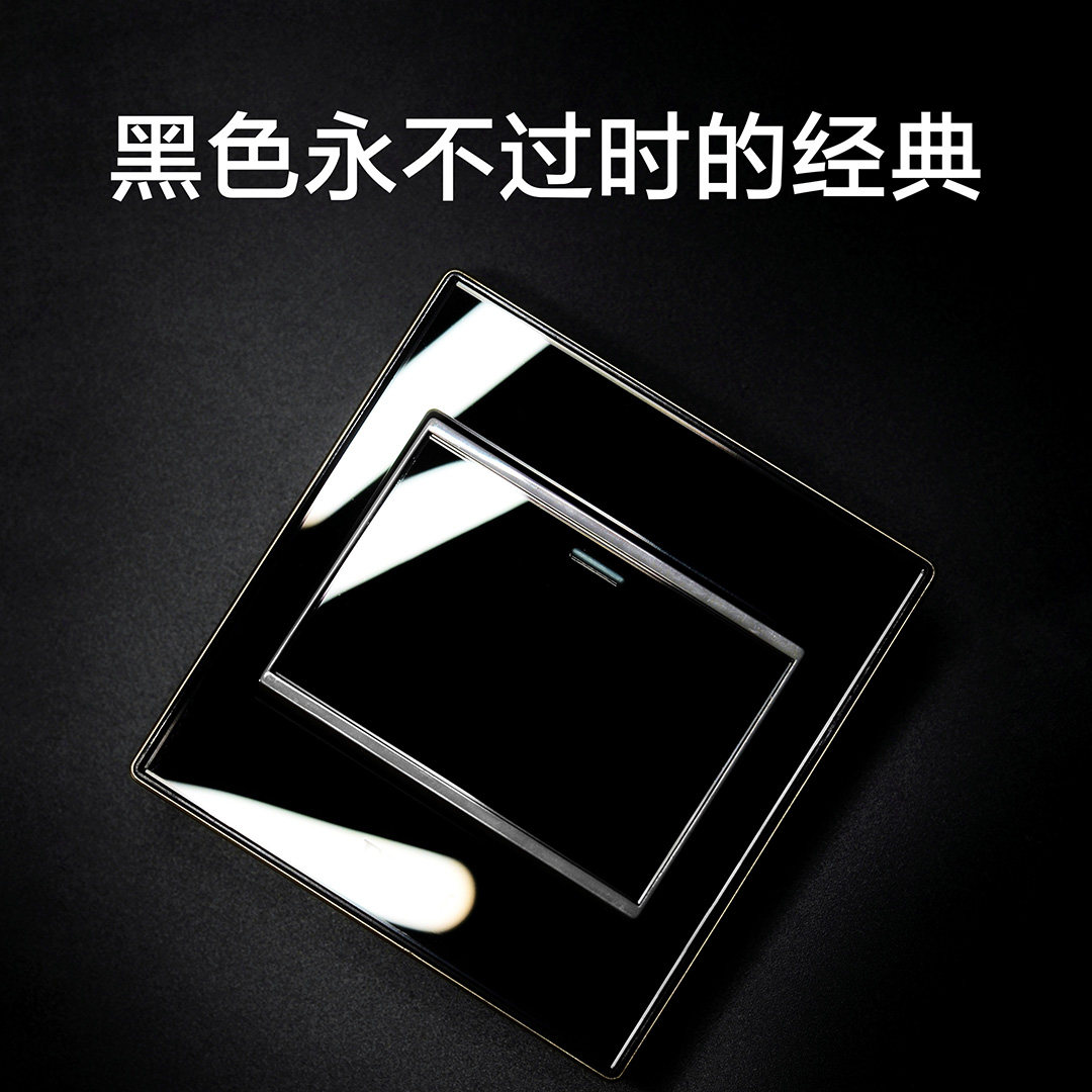 壁虎黑色水晶开关插座面板 一开五孔三孔插座控 玻璃镜面V7餐