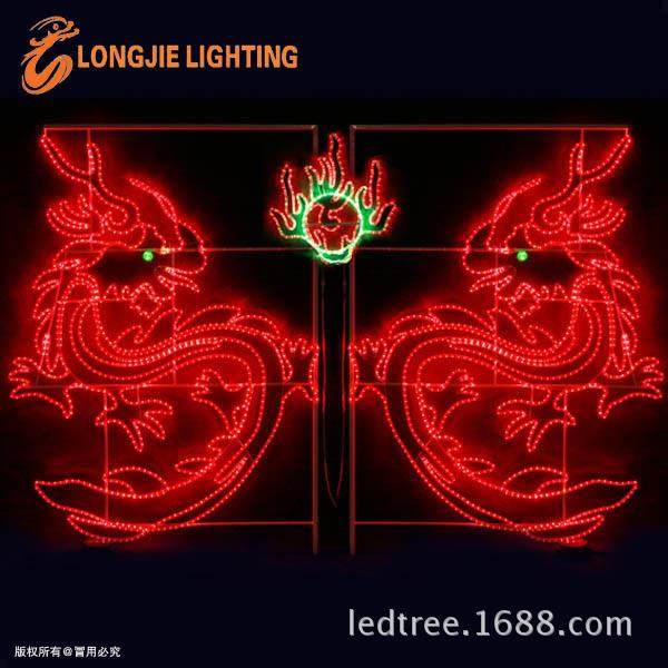 高:2.1米,宽:1.7米 双红龙戏珠 LED图案灯,路灯杆上装饰灯