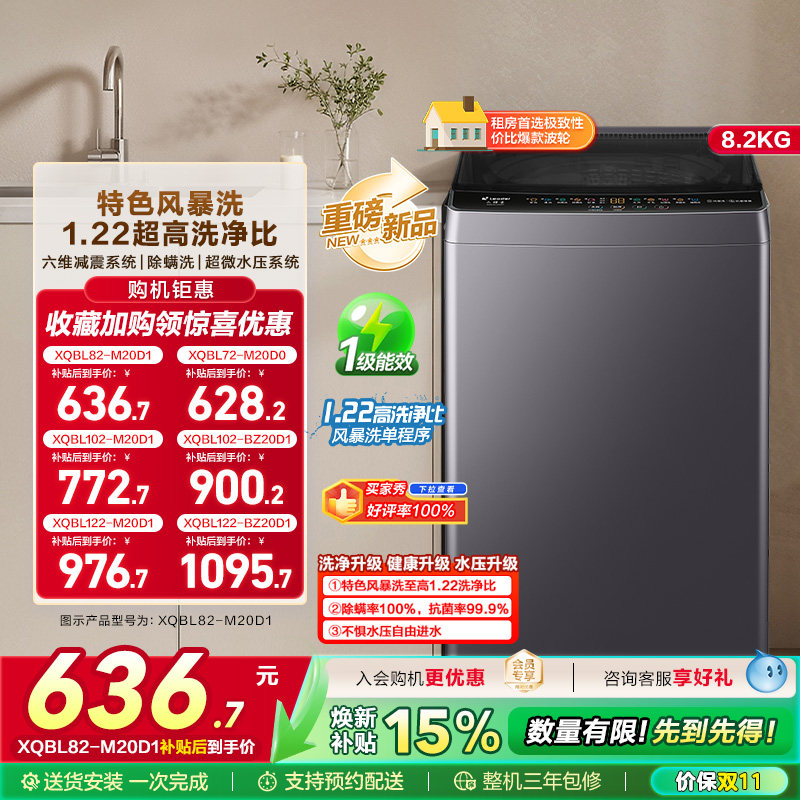 换新补贴海尔出品统帅10/8/7kg大容量波轮家用全自动洗衣机20D1
