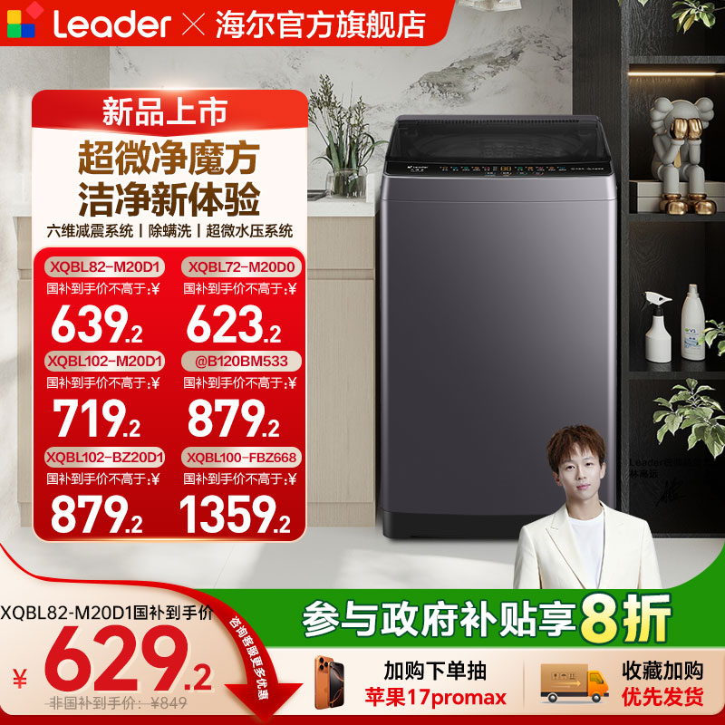 全民补贴海尔出品统帅12/10/8/7kg大容量波轮全自动洗衣机20D1
