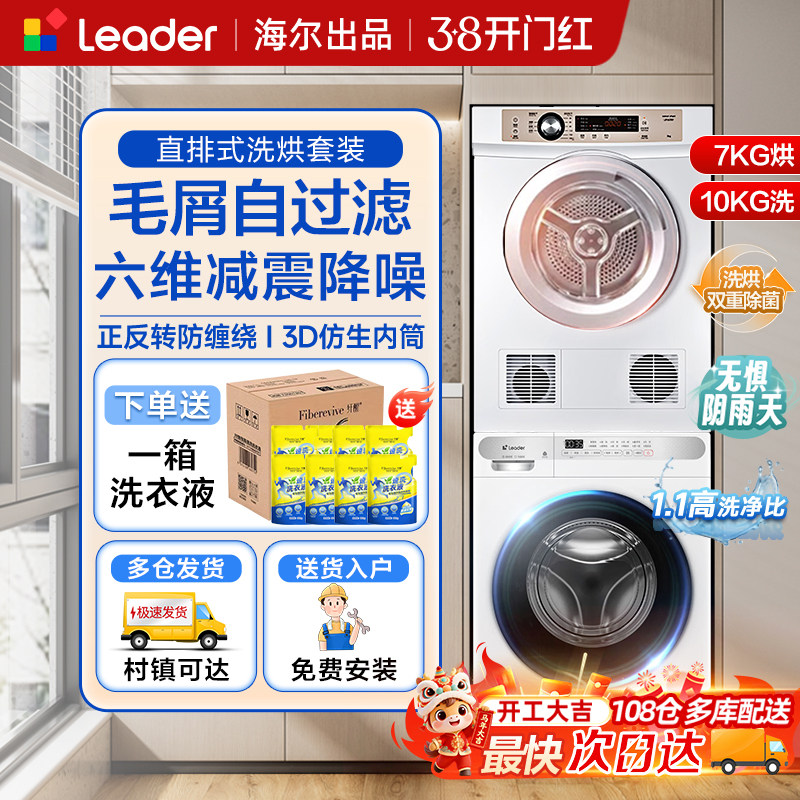 海尔统帅洗烘套装家用全自动滚筒洗衣机直排烘干机热泵组合7/10kg
