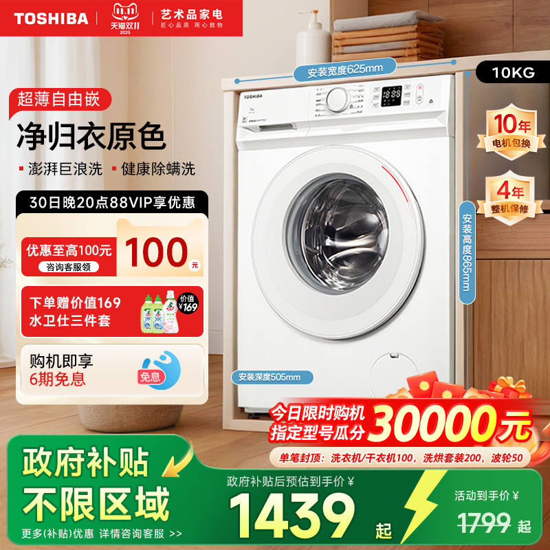 【国补不限地域】东芝小白桃7KG超薄小型全自动洗衣机以旧换新